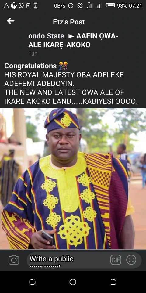 Therefore, the people of Ikare land are rejoicing and have started congratulating the king physically and medially as peaceful atmosphere is currently being observed in the palace..