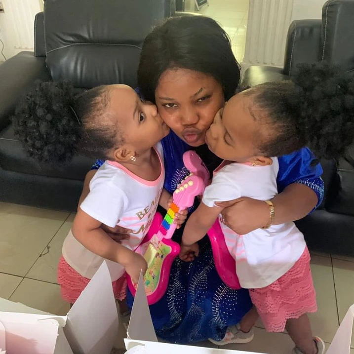 This is why Nollywood Actress, Seyi Edun is always seen with this beautiful two girls and always call them her own even though the maternity of the twin girls are yet to be confirmed.