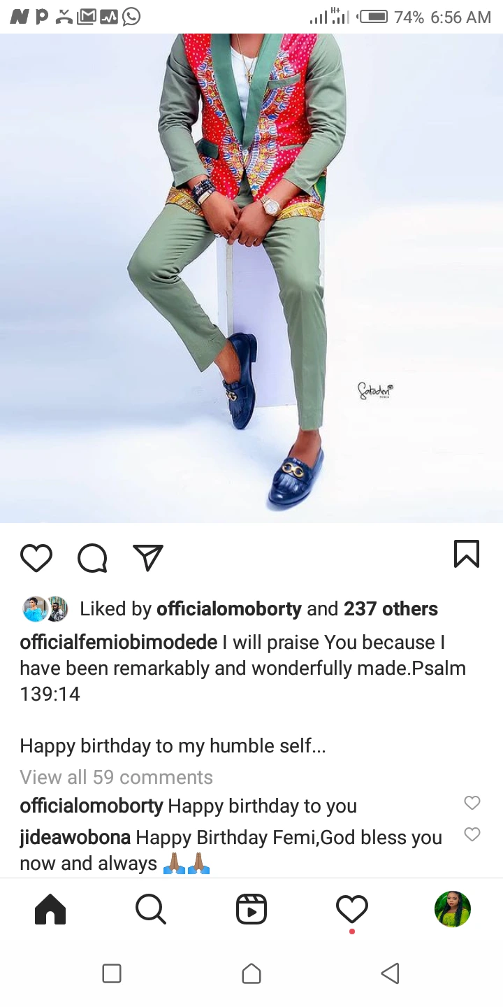 The Yoruba actor Obimodede Michael Oluwafemi celebrates his birthday in a special way, with stunning pictures today. This talented Yoruba actor took to his social media platform, to celebrate his belated birthday. He was born exactly today, on February 11th. Celebrating his birthday, actor Obimodede Michael Oluwafemi wrote; I will praise You because I have been remarkably and wonderfully made. Psalm 139:14, happy birthday to my humble self he said.